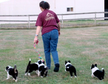 Weather permitting, the puppies experience daily adventures as they explore the great outdoors at Hob Nob Farm!